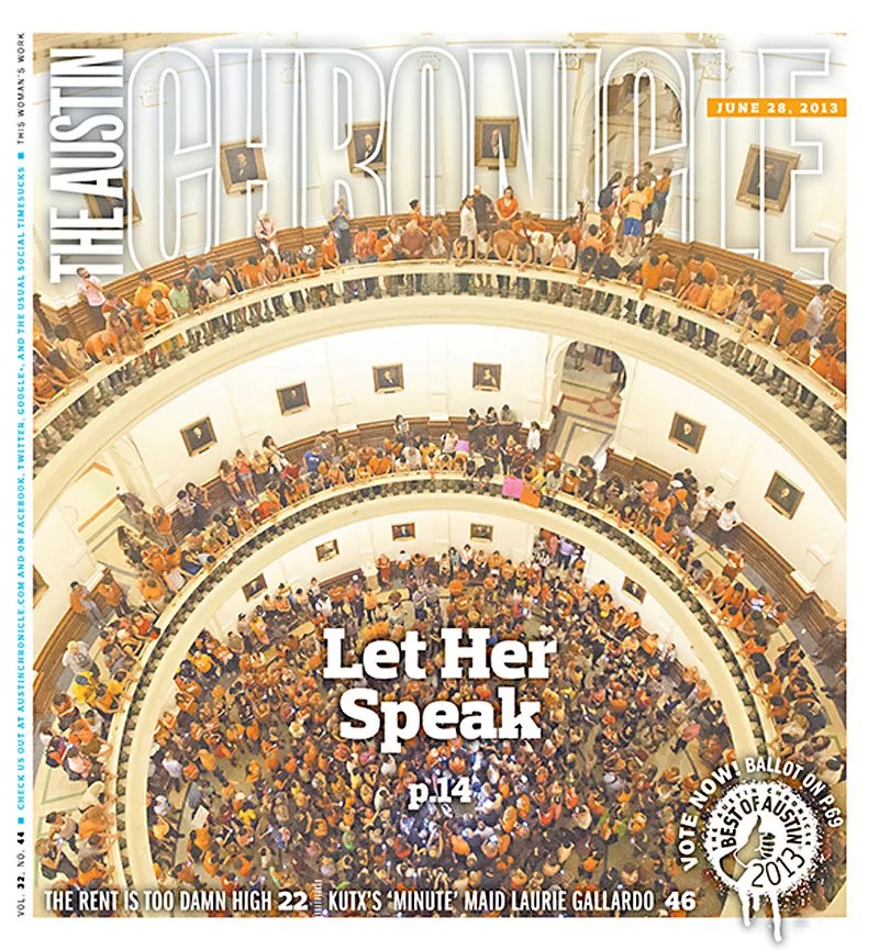 I don’t remember why I got put on the story of the 2013 abortion bill that culminated with Wendy Davis’ filibuster (“A Victory by the People,” June 28, 2013). I remember that I had started hanging around the Capitol because I was curious about what was happening – but I was a culture reporter at the time, and my work was mostly about weirdo theatre companies and football.