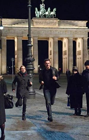 An optimist might light on the intrigue packed into the title’s terse tergiversation, and surely Unknown is never better than in its early stages when the audience still hopes the little gray cells may get a workout alongside the adrenal gland. This thriller, from the Catalonian director of Orphan, swiftly establishes the facts – an academic named Martin Harris (Neeson) arrives in snowy Berlin with his pretty wife, Elizabeth (Jones), to deliver a speech at a biotechnology conference – and then immediately calls those facts into question when Martin suffers a head injury and wakes from a coma to discover his colleagues branding him an impostor, another man (Quinn) sporting his nametag at the conference, and Elizabeth denying all knowledge of him. (One can imagine the keepsake mug: “I cheated death, and all I got was my lousy wife swearing I’m a perfect stranger.”) The gray cells, keen for some mental gymnastics, leap into action – Is Martin crazy? Or is this all some winding conspiracy? – and for a time, Unknown enjoyably motors along on the anticipation of more subterfuge or some plot-twisting prestidigitation. We wait: sniffing for clues in every raised eyebrow, perking at the sight of a sinister German trailing Martin, his sketchiness signposted with modernity’s version of a curling mustachio – the hands-free Headset of Evil attached to one ear. And we wait some more. Pretty soon, we’re at the cooling-of-the-heels place. Yes, yes, there’s a more-than-passable car chase that skitters dangerously close to the trolley line, but soon after – yet long before the thudding big reveal, with all its moral quandaries quashed with a Hollywood action hero’s self-righteous fervor – a deadening realization sets in: This is no more (but no less?) than what we have rather oddly come to expect from Neeson in his late period (Taken, The A-Team) – not quite a riddle wrapped in an enigma, just a paycheck gig cloaked in an actioner, moonlighting as a travelogue.